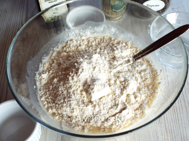 Замесить тесто. Может уйти чуть больше муки, но не стоит "затягивать".