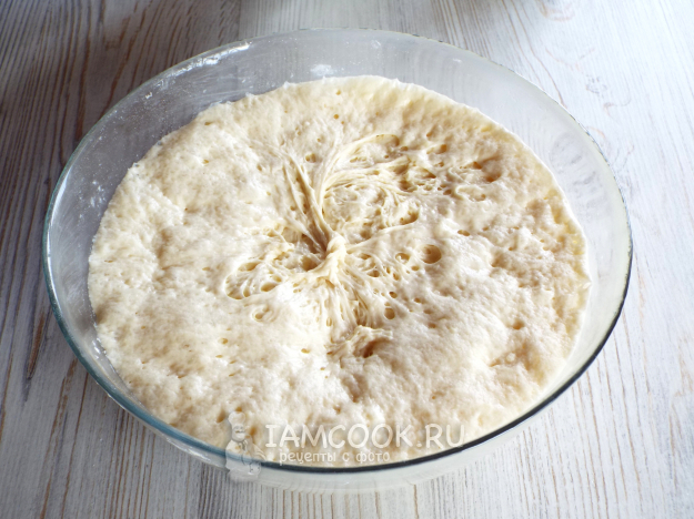 Обернуть миску плёнкой и убрать тесто в тепло для подъема.