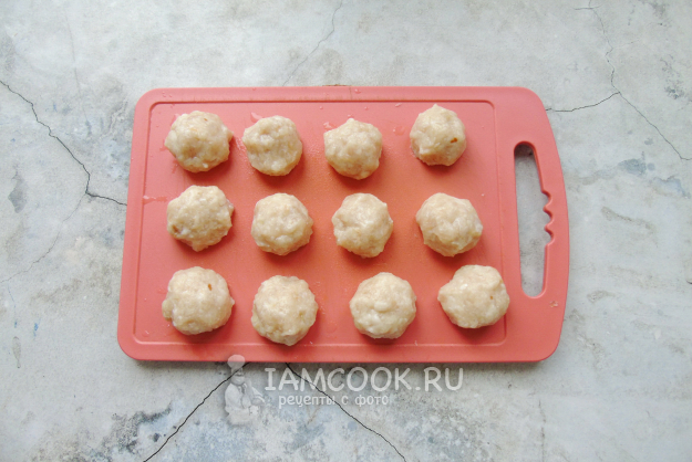 Из фарша влажными руками сформируйте фрикадельки диаметром приблизительно 3 см.