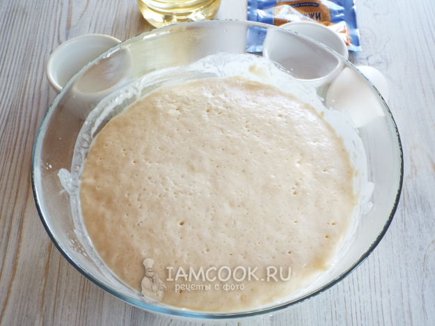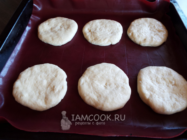 Разделить тесто на 6 частей и сформировать плоские лепёшки, да-да, именно лепешки, а не круглые пампушки)).