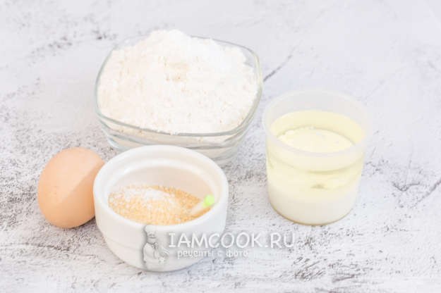 Смешайте молоко, масло, сахар, соль, ванилин, яйцо.