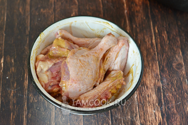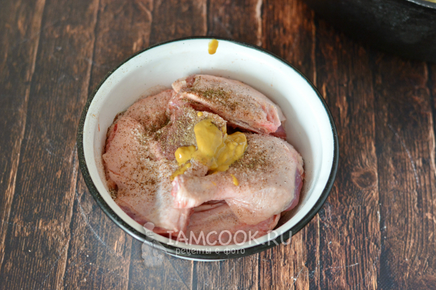 Перемешайте всё хорошенько, чтобы соль, перец и горчица обволокли каждый кусочек.