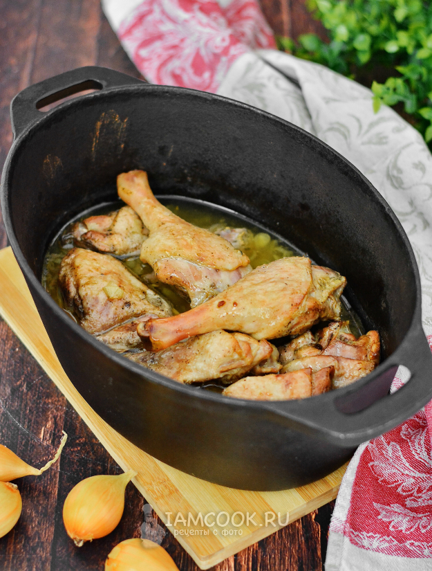 Утка за это время протомится и напитается ароматом лука, вина и тимьяна. Ах, как вкусно!