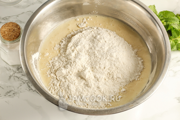 Всыпьте оставшуюся муку и аккуратно вмешайте ее.