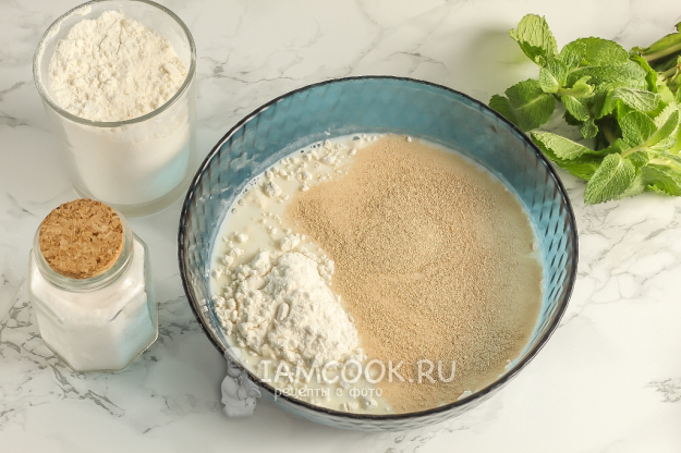 Молоко любой жирности и любого сорта слегка прогрейте в микроволновке или в кастрюле, ковше до 40 градусов. Капните им на тыльную сторону ладони. Если не обжигает, значит добавьте в молоко 100 г сахара, соль и 5 ст.л. пшеничной муки высшего сорта и сухие дрожжи. Тщательно все перемешайте, а еще лучше - взбейте венчиком, чтобы дрожжи как следует растворились. Накройте емкость пищевой пленкой и оставьте в тепле на полчасика, чтобы у вас получилась опара.