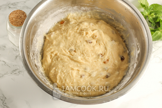 У вас должно получиться липкое сладкое тесто. Накройте емкость пищевой пленкой и оставьте тесто на 1-1,5 часа в теплом месте - оно вырастет в 2 раза.