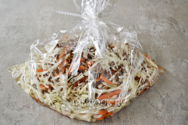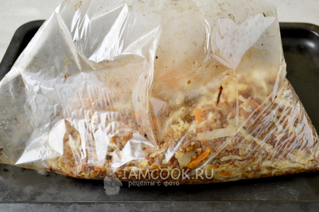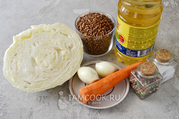 Продукты для приготовления капусты с гречкой в рукаве в духовке - перед вами.