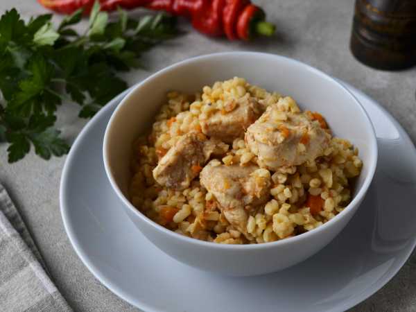 Возьмите продукты для приготовления булгура с куриными бёдрами в духовке.