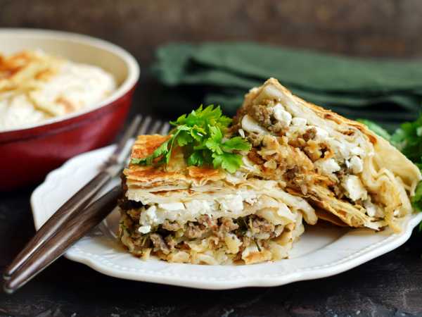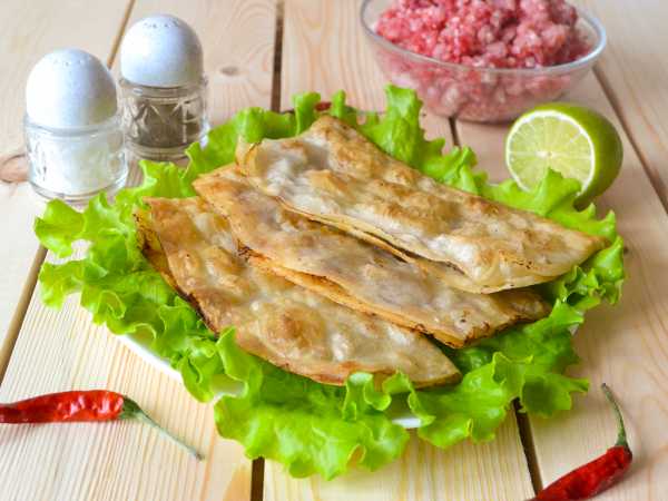 Тонкое тесто и много мясной начинки - это очень вкусно!