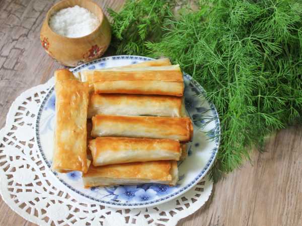 К таким трубочкам подойдет любой соус - это может быть сметана, йогурт, кетчуп или аджика.