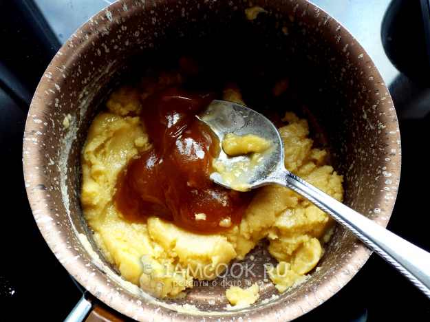 Изначально я планировала насыпать 75 гр. муки, но этого оказалось много, так что лучше насыпать постепенно и смотреть на консистенцию.