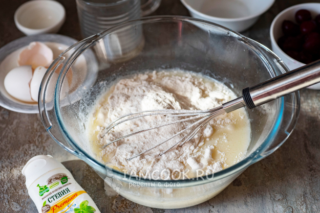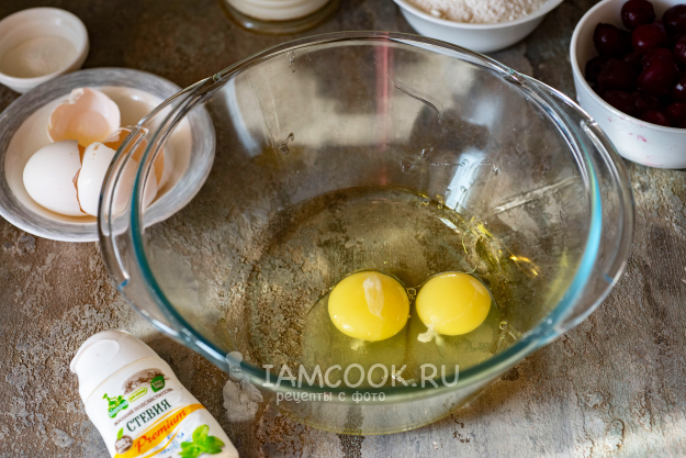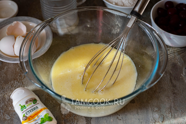 В миску вобьем яйца, добавим растительное масло и стевию.