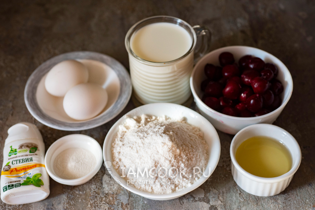 Подготовим все необходимые ингредиенты для ПП-кексов с вишней. Вишню размораживать не надо.