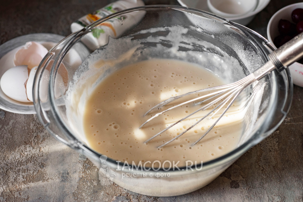 Венчиком активно перемешаем. В итоге у нас должно получиться тесто, по консистенции похожее на оладьевое.
