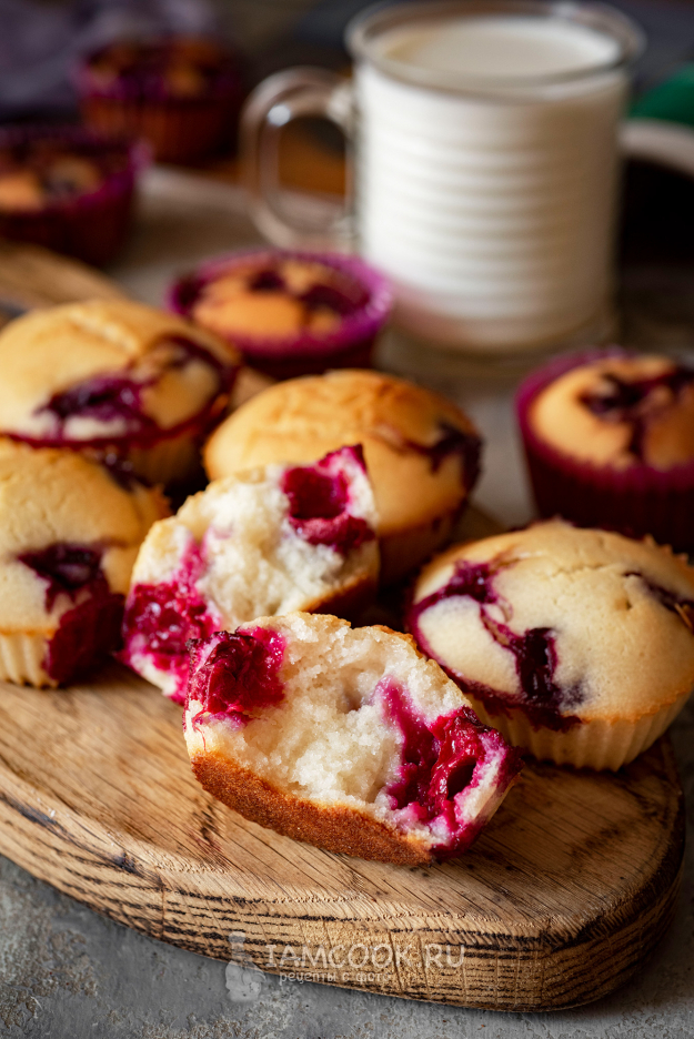 Готовые диетические кексы с вишней полностью охлаждаем и подаем к столу. Приятного аппетита!