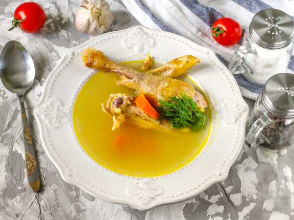 Все необходимые ингредиенты для приготовления куриного бульона из окорочков - перед вами.