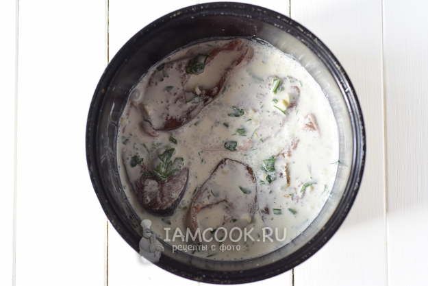 Поверх стейков выльем оставшуюся часть сметанного соуса.