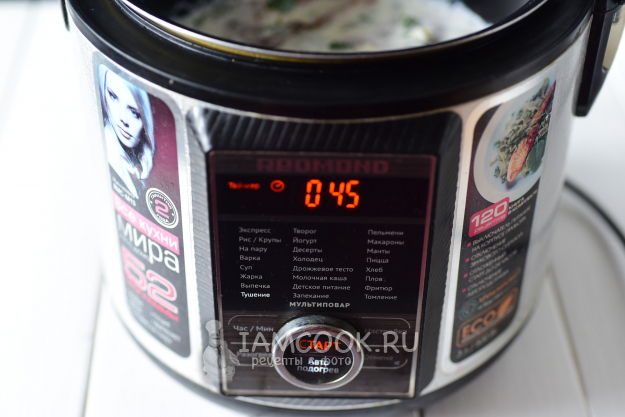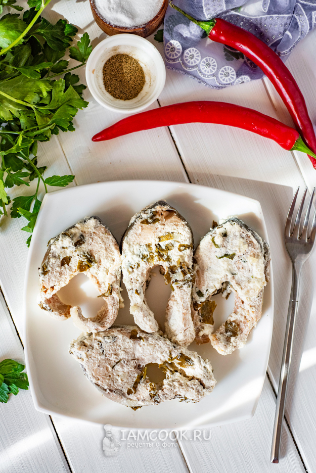 Готовим горбушу в сметане в мультиварке на режиме «Тушение» 45 минут.