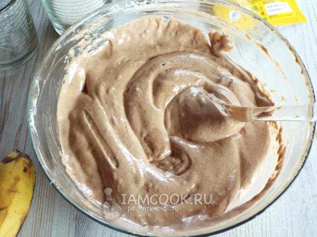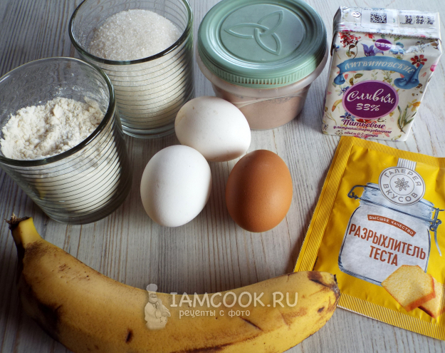 Возьмите необходимые ингредиенты, чтобы приготовить шоколадный рулет с бананом.