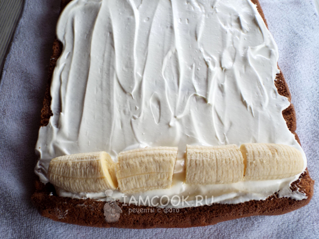 На край разместить банан (удобнее разрезать его на несколько частей).