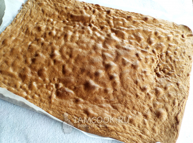 Сразу перевернуть бисквит на полотенце, снять бумагу и скрутить рулет.