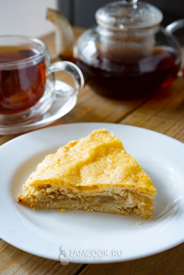 Готовый пирог с яблоками и сыром немного охладим, нарежем на кусочки, подадим к столу. Приятного аппетита!