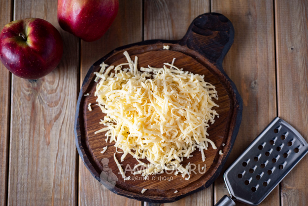 Сыр натрем на крупной тёрке.