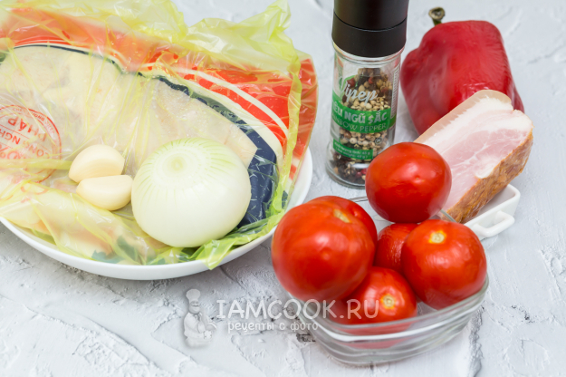 Для приготовления куриных бедер с овощами на сковороде соберите продукты по списку.