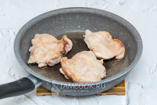 Курицу обжарьте с двух сторон на подсолнечном масле до полуготовности.