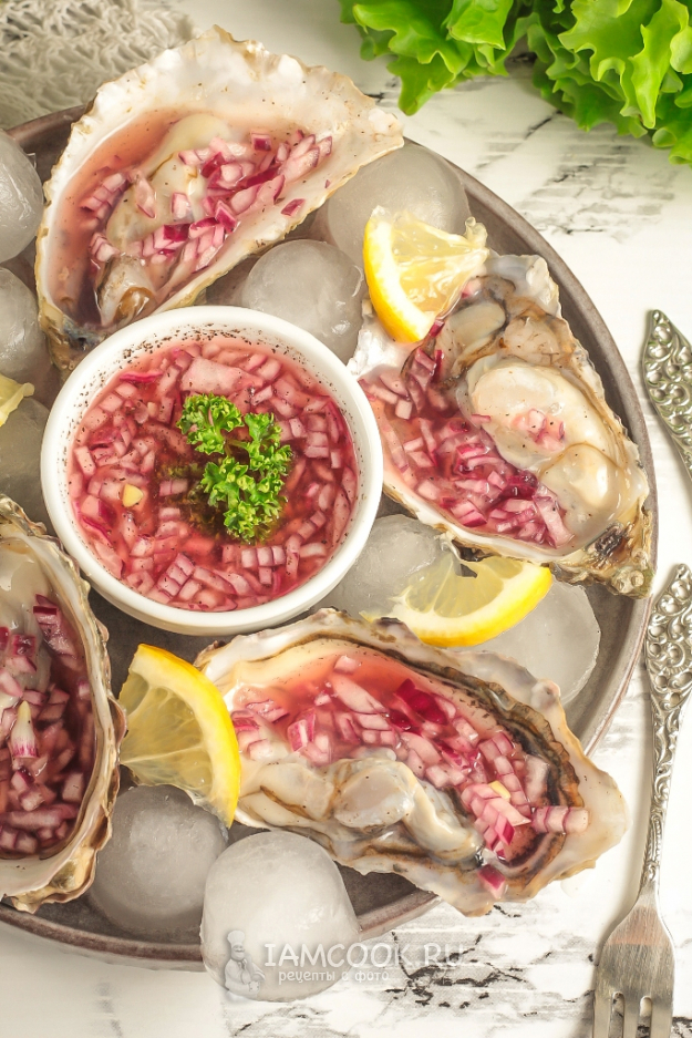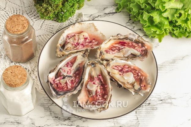 Влейте приготовленный соус в раковины, чтобы он покрыл мясо моллюска. Оставьте на 5 минут - за это время соус для устриц подчеркнет их вкус, выделит его. Если не любите, чтобы в соусе попадался лук, то просто процедите соус и после влейте в раковины.