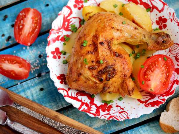 Запеченные в духовке куриные окорочка с хрустящей корочкой подавайте с любимым гарниром, соусом и свежим салатом.