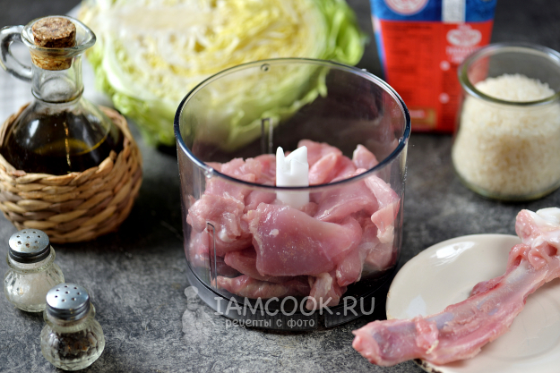 Мякоть нарежьте кусочками, переложите в блендер, смелите в фарш.