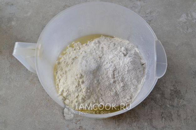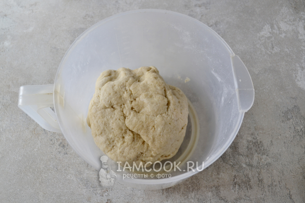 Замесите тесто. Забивать тесто мукой не нужно. Оно очень быстро замешивается, получается мягким, совсем не прилипает к рукам.