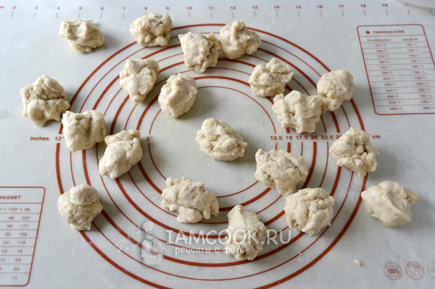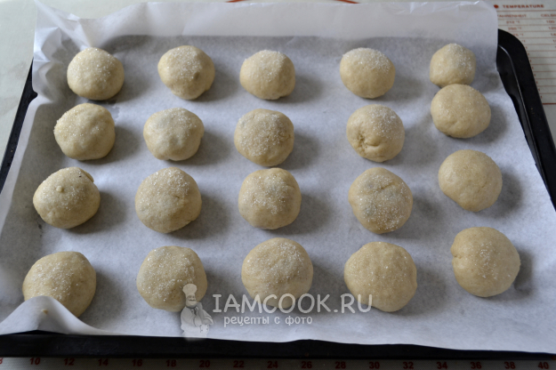 Положите заготовки печенья на противень, застеленный пекарской бумагой.