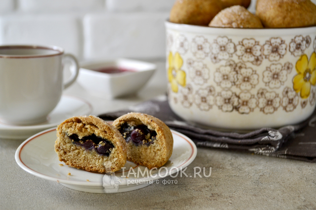 Подготовьте продукты для выпечки постного печенья на огуречном рассоле с ягодной начинкой.