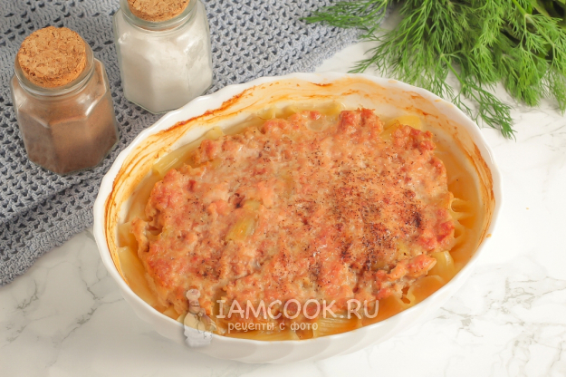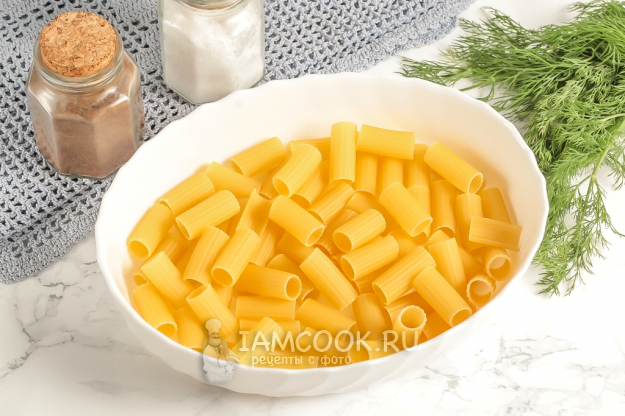 Выложите макароны в приготовленную форму с высокими бортиками. Пасту промывать не нужно!