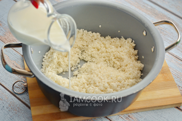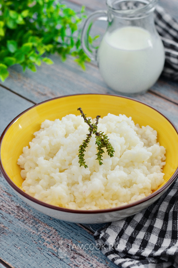 Все продукты для приготовления сливочного риса на гарнир соберите по списку.