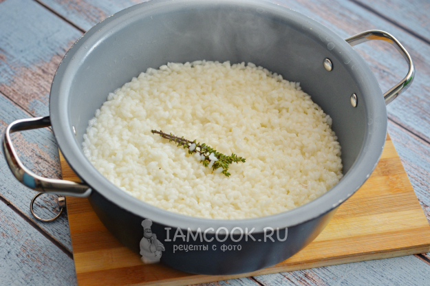 Для дополнительного аромата можете добавить к рису пару веточек тимьяна, петрушки или чуть раздавленный ножом зубчик чеснока.