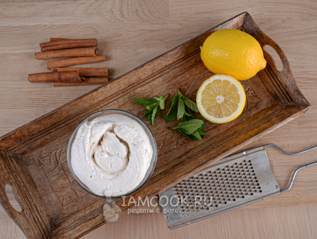 Подготовим всё для подачи: свежая мята, лимон и корица. Рекомендую использовать свежесмолотую корицу (я натираю палочки на мелкой терке).