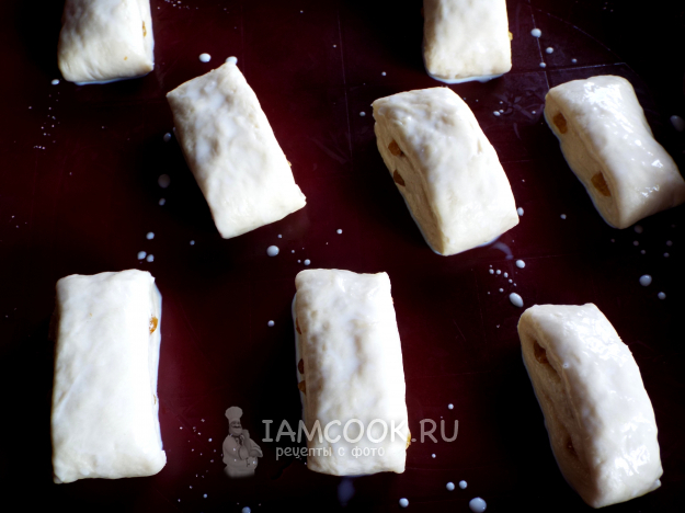 Разрезать на 8 частей. Смазать заготовки молоком.