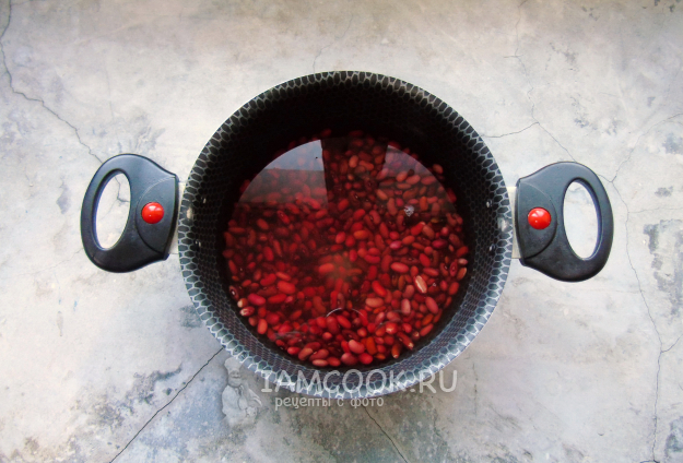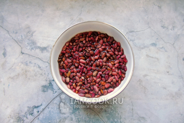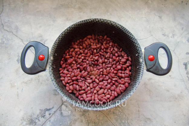 Прежде всего займитесь фасолью. Конечно, можно купить готовую консервированную. Но лучше все-таки для фейжоады сварить фасоль самим. Фасоль тщательно помойте и выложите в миску. Залейте холодной кипяченой водой и дайте набухнуть несколько часов, а лучше ночь.