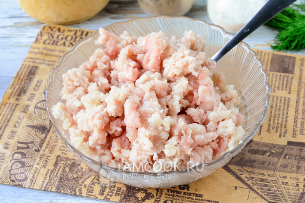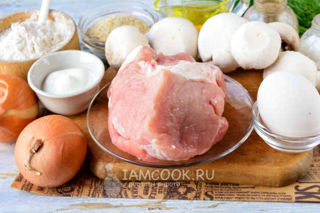 Соберите все ингредиенты для приготовления вкусных зраз из свинины с грибами.