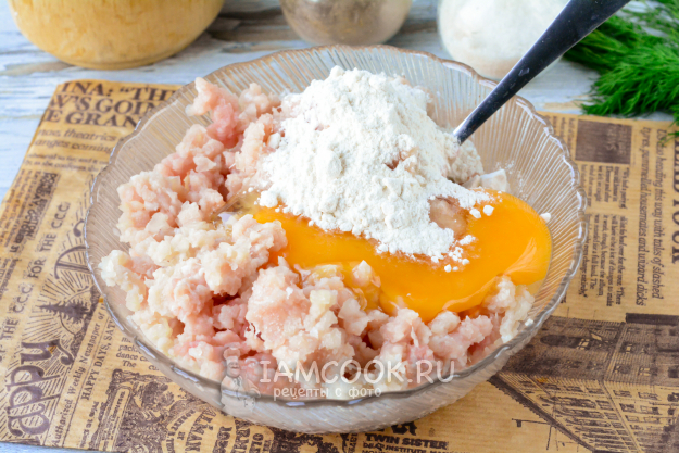 В фарш вбейте куриное яйцо и всыпьте немного муки, перемешайте - мясная основа для котлет готова.