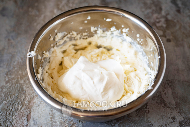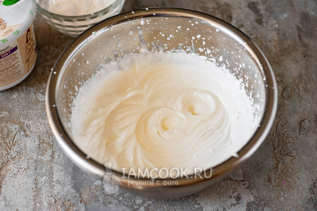 К рикотте с сахарной пудрой добавим взбитые сливки.