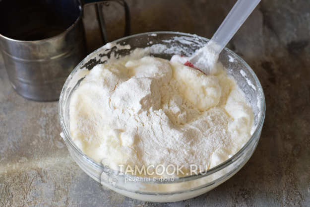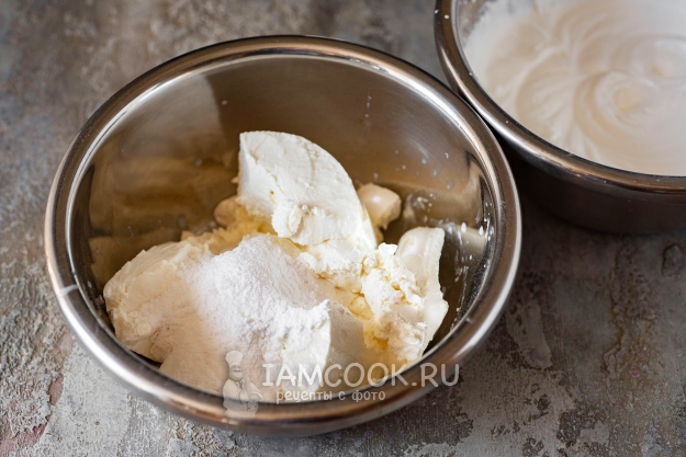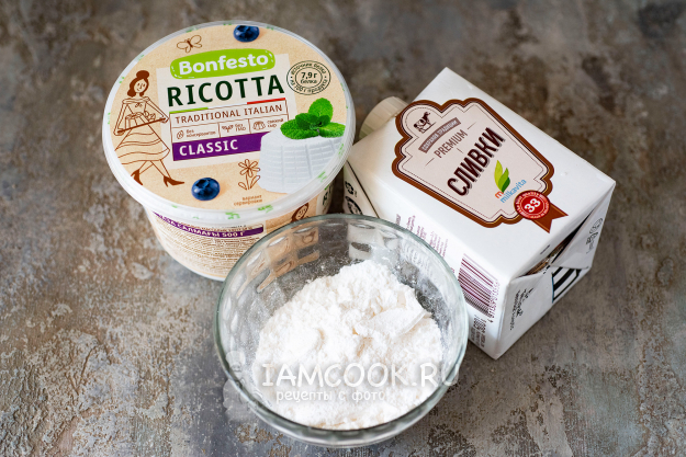 В отдельную миску выложим всю рикотту, добавим сахарную пудру.