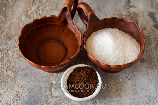 Сам по себе бисквит не влажный и поэтому при сборке тортика бисквитные коржи необходимо пропитать. Готовим пропитку для бисквита из натурального кофе, воды и сахара.