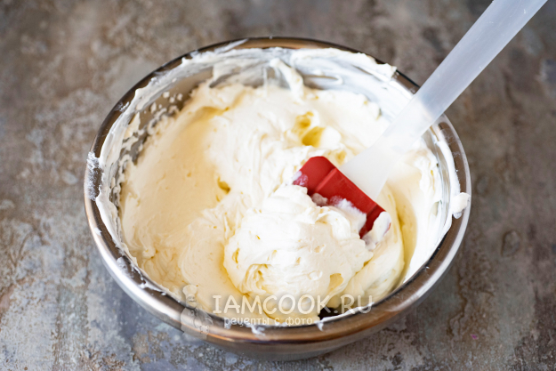 Миксером перемешаем всё на небольшой скорости до получения устойчивого, однородного крема с гладкой структурой.