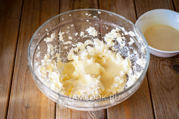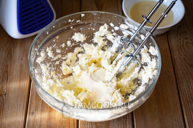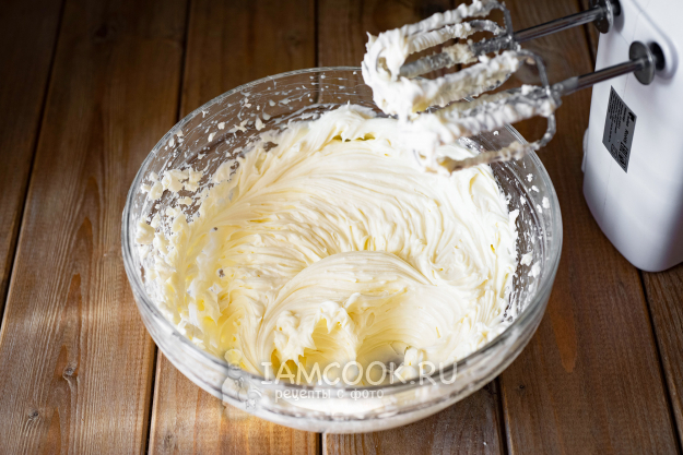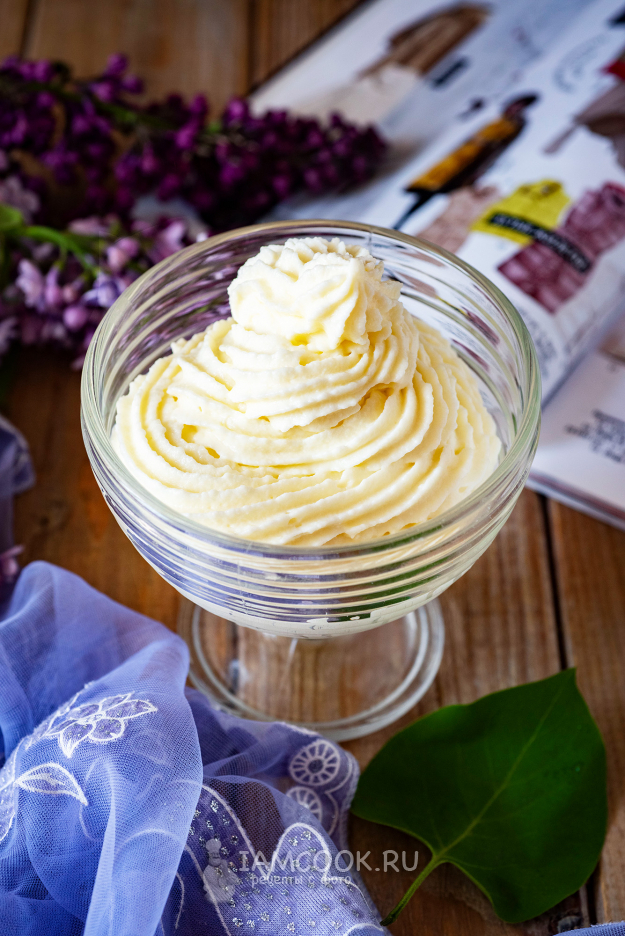 Этот крем отлично подходит для прослаивания домашних тортиков, для шапочек капкейков, для всевозможных пирожных. Готовится крем невероятно просто: соединяем указанные ингредиенты и взбиваем все миксером.