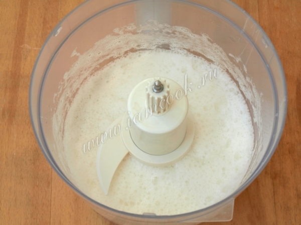 В чашу комбайна поместить белки и взбить их до белой пышной пены.
