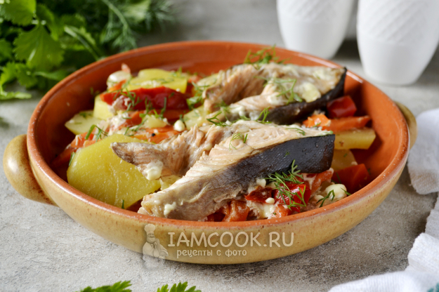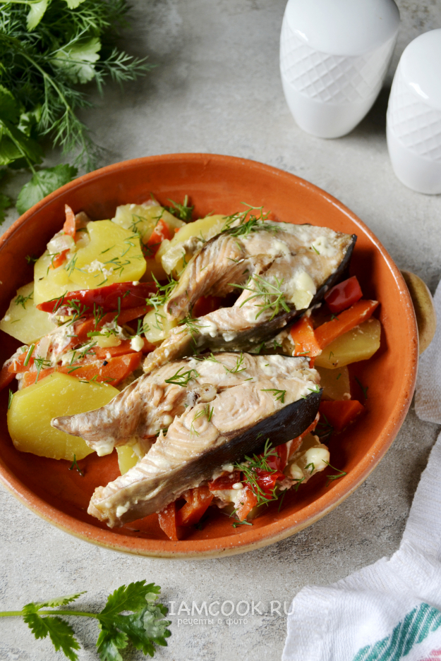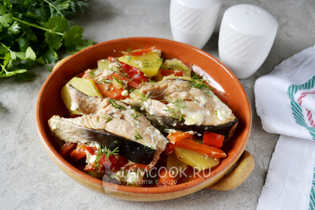 Овощи мягкие, сочные, горбуша, благодаря тушению с майонезом, получилась не сухой.